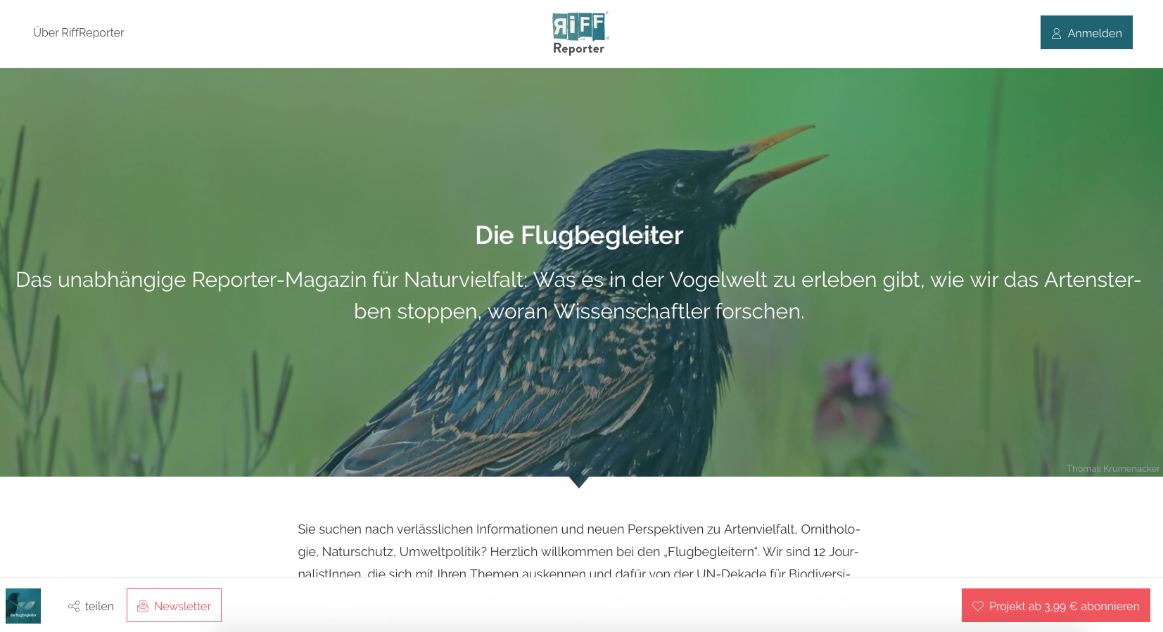 Flüsse. Verstärkt Berichte über Gewässer. Wir haben die Europäische Wasserrahmenrichtlinie, die umgesetzt werden muss. Das ist ein ganz stark lokales Thema, das überall eine Rolle spielen wird. Da wird bisher relativ wenig drüber berichtet und drüber gesprochen. Gerade die kleinen und mittleren Flüsse werden oft vergessen. Da gibt es aber eine große Pflicht, etwas zu tun. Es gibt wahnsinnige Probleme bei Flüssen. Man denkt, man hätte seit den 80ern oder 90ern die größten Verschmutzungen eingedämmt, das stimmt auch, aber es gibt neue Vergiftungen. Die RiffReporter zum Beispiel haben ein tolles Projekt – die haben ja die Vogel- und die Flussreporter. Weitere Themen wären Artenschwund, nicht nur bei den Insekten, sondern auch bei den Amphibien und den Säugetieren. Da ist es spannend, auch mal andere Tierarten anzuschauen und das auch mal ein bisschen politischer und investigativer anzugehen.